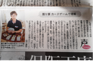 プラスマイナスの計算を楽しんで学ぶ、カードゲームvaloの話題が北海道新聞に掲載されました。